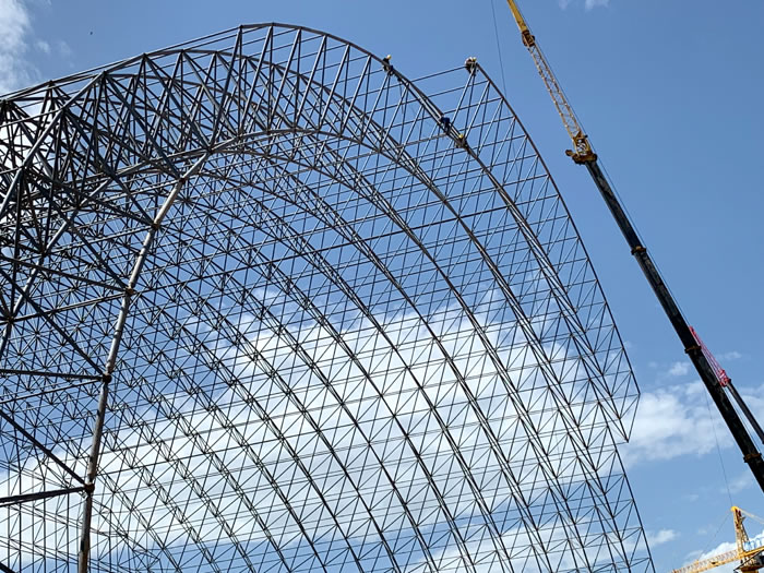 (2)网架加工前应对现场尺寸进行复测,确认无误后方可进行加工、安装;网架制作、运输、安装应遵守《空间网格结构技术规程》JGJ7-2010、《钢网架渝中螺栓球节点》JG/T 10-2009、《钢网架渝中螺栓球节点用高强度螺栓》 GB/T 16939-2016、《渝中钢结构渝中工程渝中施工规范》 GB50755-2012、《渝中钢结构渝中工程渝中施工质量验收标准》 GB50205-2020。